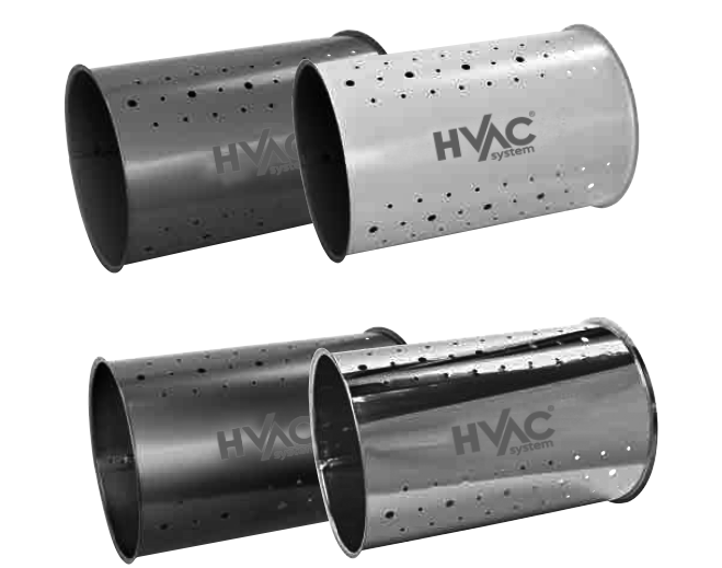– Pour une rigidité optimum et limiter une éventuelle propagation acoustique dans le réseau, les conduits perforés seront en acier galvanisé d’épaisseur minimum de 8/10ème à 10/10ième selon les diamètres.